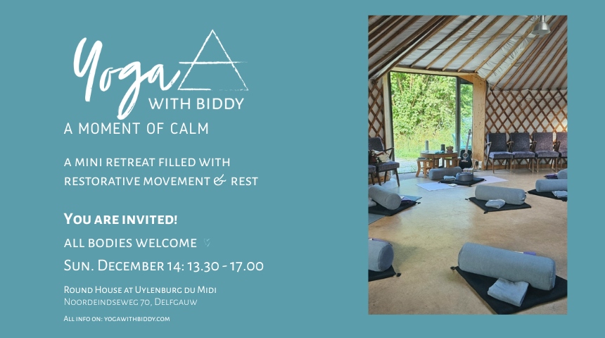 De Yoga & Thee is voortaan 5 weken van te voren te reserveren! Ik kijk ernaar uit om jullie daar te zien!